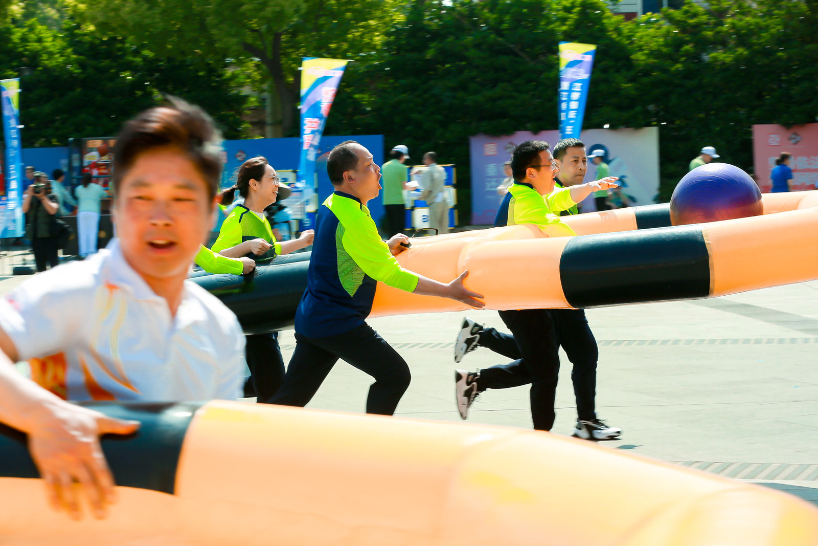 团体项目“俄罗斯方块”展现了选手们的速度与智慧;“十拿九稳”考验着选手的团结与合作;“动感五环”则比拼着大家的平衡度与协作性。个人项目比拼也空前激烈,“飞盘射门”、“极速投篮”、“一锤定音”、“迷你高尔夫”项目看似简单,要取得好成绩却不容易。场上笑声不断,大家的热情比当空的太阳还强烈。