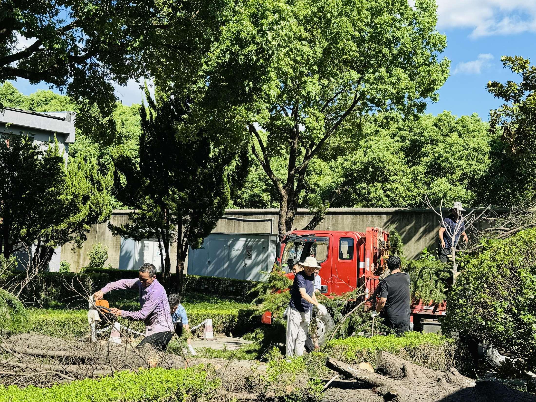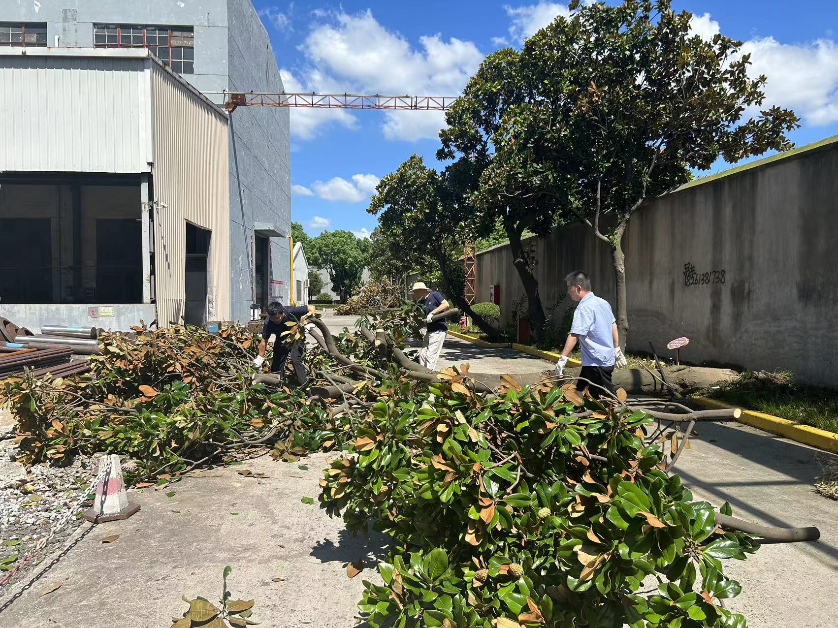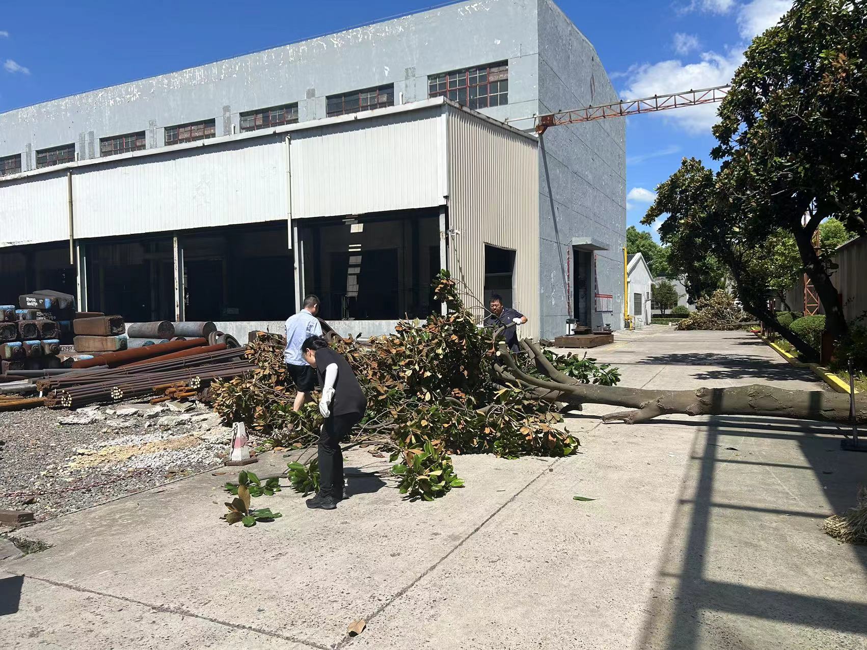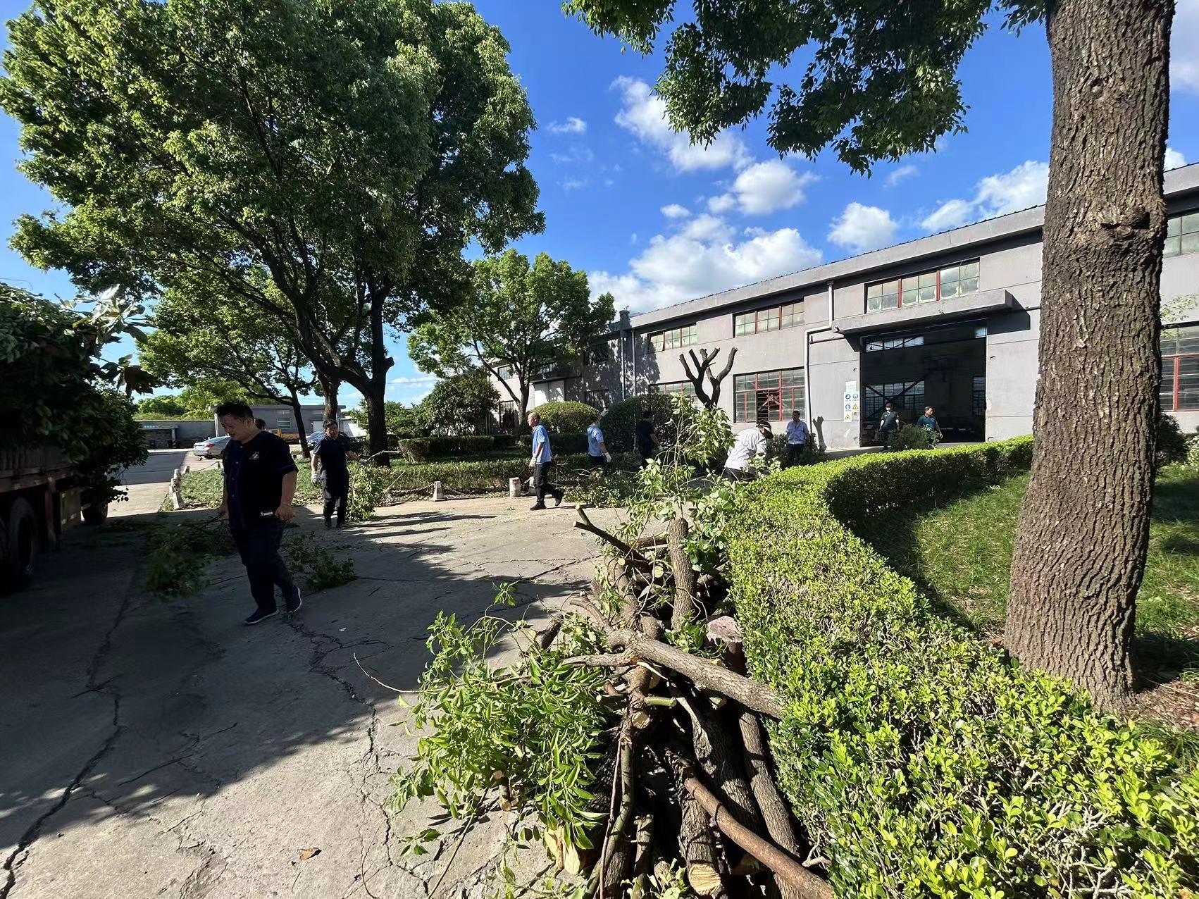 台风“贝碧嘉”作为上海1949年以来登沪最强台风,对我司房屋、绿化、环境造成了一定破坏,为确保工作日正常运营,9月17日中秋佳节,申江支部党员及部分员工志愿者提前返岗检查厂区建筑、设备并清扫道路。