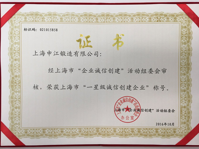 祝贺公司荣获上海市一星级诚信创建企业称号