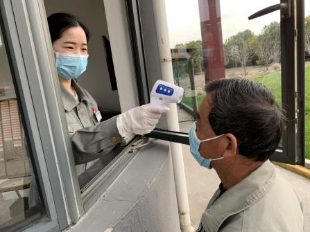 二、厂区入口体温检测到位。公司志愿者每天早上6:00-7:30轮流执勤,在入口处为上岗员工检测体温并下发口罩。工作时间则由专人值守,对进出人员进行测温,进入车辆进行登记。凡体温超过37.3℃者、未佩戴口罩者不得进入厂区。